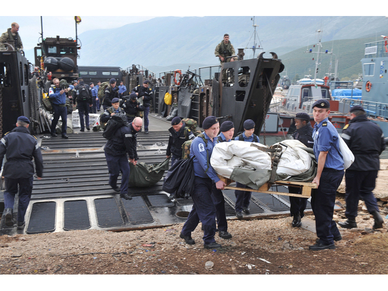 Группа из 16 подводных ныряльщиков проводила занятия с корабля «Маунтс Бэй». HMS Montrose выступал в качестве плацдарма для высадки десанта Royal Marines (Королевской морской пехоты) и сухопутных войск спецназа на берег в маленьких моторных лодках. Всего морпехам за время учений довелось поучаствовать в 3х видах высадки, 2 из которых проводились с моря.